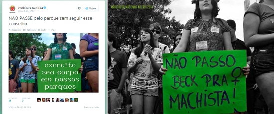 Uma imagem postada ontem (08) no perfil da Prefeitura de Curitiba no Twitter revoltou os ativistas da Marcha da Maconha Curitiba. Com edição, a imagem trazia a mensagem “Exercite seu corpo em nossos parques”, ocultando a mensagem original que é “não passo beck para machista”.
