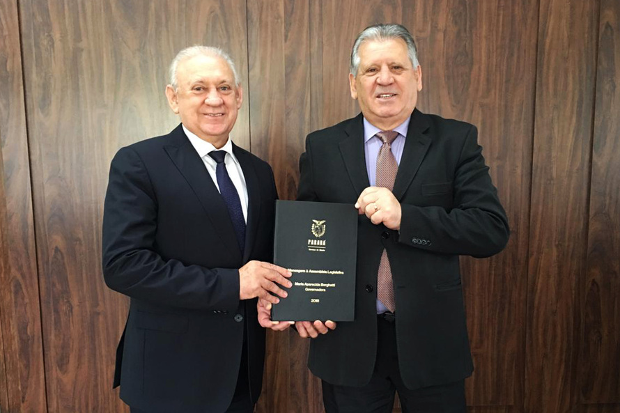 O Governo do Estado entregou nesta terça-feira (18) à Assembleia Legislativa do Paraná, a mensagem da governadora Cida Borghetti com a prestação de contas de 2018. O chefe da Casa Civil, Dilceu Sperafico, levou o documento em mãos ao presidente da Assembleia Legislativa, Ademar Traiano.
