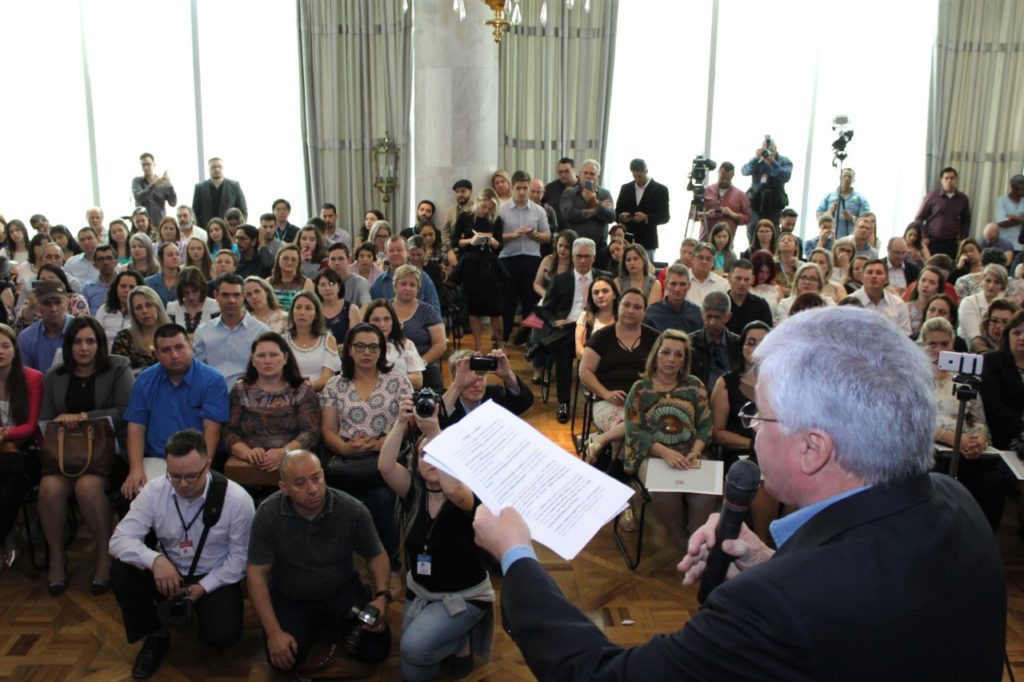 O chefe da Casa Civil Valdir Rossoni participou nesta segunda-feira (25), em Curitiba, da entrega das ordens de serviço para início de obras em 75 escolas estaduais de 60 municípios do Estado. Os investimentos, realizados através do Instituto Fundepar, foram autorizados pelo governador Beto Richa e somam R$ 7,3 milhões para reformas, ampliações e aquisição de equipamentos e materiais.