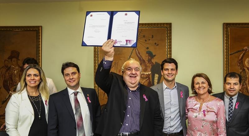 O prefeito Rafael Greca sancionou nesta quinta-feira, 19, lei que institui no calendário oficial do município o Outubro Rosa, mês dedicado à prevenção contra o câncer de mama. Na cerimônia, Greca destacou a importância da data e das ações preventivas à doença, que atinge perto de 16% da população feminina na Região Sul do Brasil.
