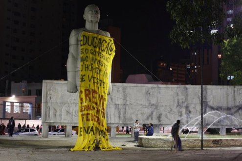 O flagra é de ontem (28). Professores vestiram o Homem Nu, que dá nome a praça 19 de Março, no Centro Cívico da capital, para chamar a atenção da sociedade à paralisação que já dura mais de 40 dias e que atinge 59 instituições federais de ensino em todo o país (entre elas, 57 universidades).
