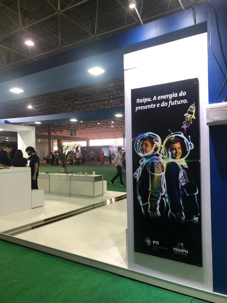 Itaipu e PTI compartilham um estande no pavilhão, no qual é possível testar os óculos de realidade virtual para “conhecer” a usina, assistir ao novo filme institucional da Itaipu e participar de uma série de atividades propostas pelo PTI.