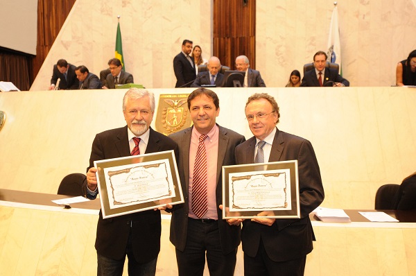 O programa “Cultivando Água Boa”, da Itaipu Binacional, recebeu nesta segunda-feira (14) Menção Honrosa da Assembleia Legislativa em reconhecimento ao primeiro lugar do Prêmio Água para a Vida 2015, concedido pela Unesco, na categoria “Melhores práticas em gestão da água”. A homenagem, proposta pelo deputado Chico Brasileiro (PSD), foi recebida pelo diretor-presidente da Itaipu Binacional, Jorge Samek, e pelo diretor de Coordenação e Meio Ambiente, Nelton Friederich.