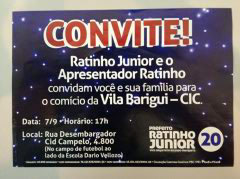 Proibido pela Justiça Eleitoral de comandar comício em favor do filho, candidato à prefeito, o apresentador Ratinho subiu no palanque mesmo assim. A Justiça considerou que uso de artista em campanha contraria a lei que proíbe os comícios com artistas, os chamados showmícios. Ratinho disse que falou no comício como pai, mas o convite chamava para um comício com a presença do apresentador do SBT.