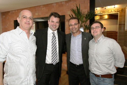 O secretário de Comunicação, Marcelo Cattani, representou hoje o governador Beto Richa na posse em Curitiba da nova diretoria do Sindicato das Empresas de Rádio e Televisão do Paraná. Caíque Agustini, da FM Verde Vale de União da Vitória, assumiu a presidência da entidade e vai comandar o Sert-PR nos próximos três anos. Na foto: Alexandre Barros (ex-presidente), Cattani, Marcio Villela (presidente da Aerp) e Caíque Agustini, novo presidente da Sert-PR.