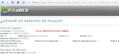 “O Antonio Carlos (Atella) faz pesquisas para mim na Receita e em outros órgãos federais, mas nunca passou pelas minhas mãos documento algum sobre essa pessoa (Verônica)”, rebateu Cabral, que disse ser filiado ao PV em Francisco Morato, onde reside e possui um bar.