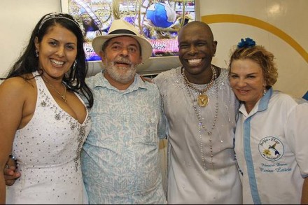 A foto original é de 2009, onde Lula e Marisa aparecem abraçados com o cantor e compositor Neguinho da Beija-Flor e sua esposa, Elaine Reis.
