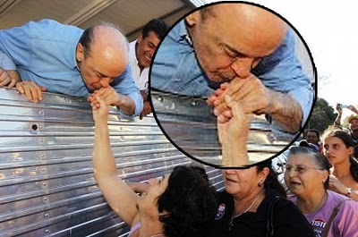 rachei de rir dessa foto, meu tio brinca assim comigo, pega minha mão e beija a mão dele, mas não é por nojo, é brincadeira de tio. Esse Serra é mto comédia.