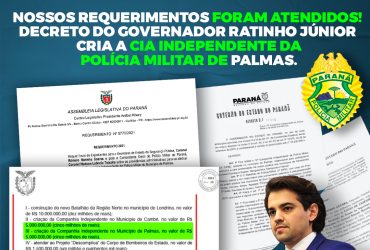 Governo do Estado cria a 12ª Companhia de Polícia Militar em Palmas a pedido do Deputado Guerra