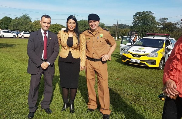 A deputada Claudia Pereira (PSC) participou ao lado do chefe da Casa Civil do Governo do Estado, Valdir Rossoni, na quinta (29), da entrega de cinco novas viaturas para o major Teixeira, comandante 14° Batalhão da Polícia Militar de Foz. Após a solenidade, o grupo seguiu para a Delegacia da Polícia Civil, com os delegados Rogério Antônio Lopes e Geraldo Evangelista. “Onde foram entregues duas viaturas descaracterizadas, que vão auxiliar nos atendimentos do Nucria e da própria delegacia”, disse Claudia.