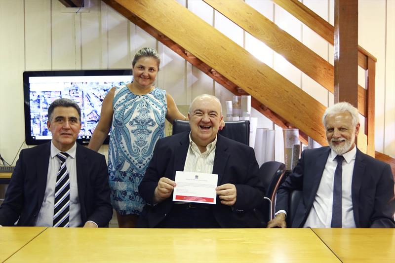 O prefeito Rafael Greca recebeu na tarde desta terça-feira (29/1), no Instituto de Pesquisa e Planejamento Urbano de Curitiba (Ippuc), os desembargadores Gilberto Ferreira e Tito Campos de Paula, eleitos, respectivamente, presidente do Tribunal Regional Eleitoral do Paraná (TRE-PR) e corregedor e vice-presidente da Corte Eleitoral paranaense. No encontro foi entregue o convite ao prefeito para a solenidade de posse do novo comando do Tribunal a ser realizada na segunda-feira, 4 de fevereiro, no auditório do TRE-PR.