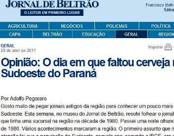 O jornalista Adolfo Pegoraro levou as páginas do Jornal de Beltrão neste sábado (30) um intrigante apanhado sobre a realidade política e social do Sudoeste do Paraná, da metade da década de 1980.