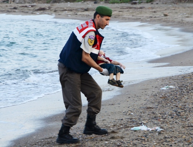 O horror mostra, mais uma vez, sua crueza mais terrível numa praia da Turquia. O que podemos fazer e mostramos ou não a imagem? Foi a pergunta das redações de noticiosos online. A imagem viralizou nas redes sociais e mostra uma criança de no máximo dois anos de idade, vestindo bermuda azul, camiseta vermelha e sapatos pretos encharcados, seu rosto pousado contra a areia das praias de Bodrum, na Turquia. Uma segunda foto, também dramática, mostra seu corpo sendo recolhido momentos mais tarde por um agente de segurança turco.