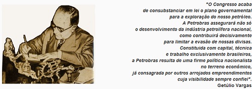 “O Congresso acaba de consubstanciar em lei o plano governamental para a exploração do nosso petróleo. A Petrobras assegurará não só o desenvolvimento da indústria petrolífera nacional, como contribuirá decisivamente para limitar a evasão de nossas divisas. Constituida com capital, técnica e trabalho exclusivamente brasileiros, a Petrobras resulta de uma firme política nacionalista no terreno econômico, já consagrada por outros arrojados empreendimentos cuja visibilidade sempre confiei”.