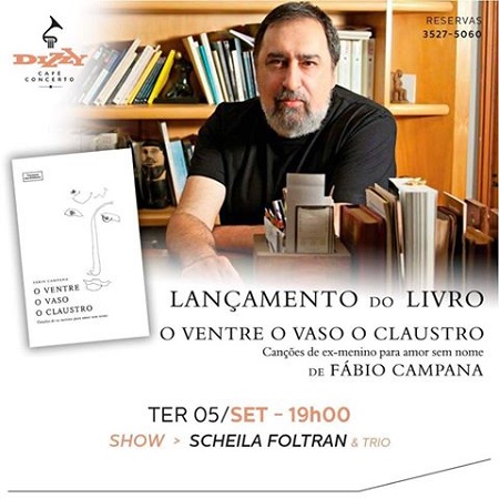 A marca de sua poesia corre também nos traços, ilustrações que traduzem de forma leve, quase criptográfica, o movimento das palavras, o poder das ideias e a generosidade das descobertas. O lançamento de O VENTRE O VASO O CLAUSTRO será no Dizzy Café Concerto, porque a música acompanha a poesia desde os tempos mais remotos. Mais ainda, porque como bem definiu a escritora Françoise Sagan, jazz é uma inquietação acelerada, assim como a poesia de Fábio.