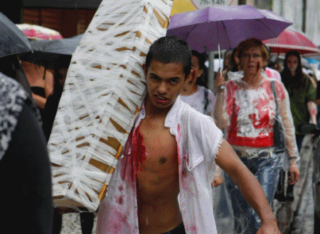 A Zombie Walk vem se confirmando como um dos maiores eventos do carnaval curitibano. Ontem, mesmo com chuva, mais de três mil pessoas fantasiadas de zumbis, caveiras, múmias e outras criaturas. As fotos são de de Ivonaldo Alexandre da Gazeta do Povo.