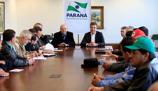 O governador Beto Richa recebeu nesta quarta-feira (25) dirigentes do MST para discutir uma pauta conjunta sobre as questões fundiárias do Paraná. A final encontro, foi anunciado que o Estado dará suporte ao Incra em uma força-tarefa para assentar as 10 mil famílias que vivem em acampamentos no Estado.