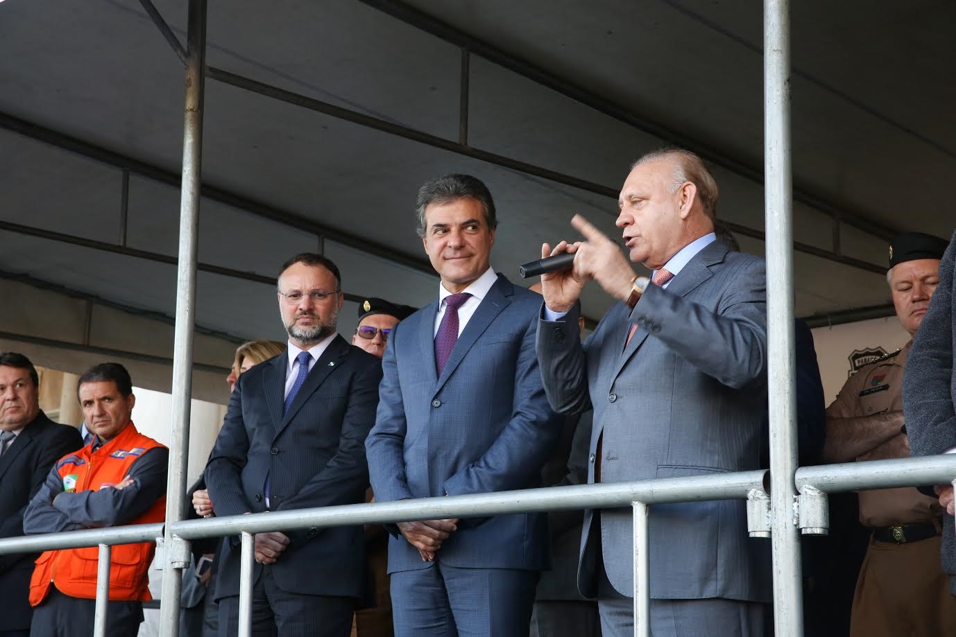 O presidente da Assembleia, deputado Ademar Traiano (PSDB) participou hoje (11), com o governador Beto Richa, da entrega de 177 novas viaturas para a Polícia Civil, Corpo de Bombeiros e Defesa Civil. Foram 77 viaturas para os Bombeiros e 100 viaturas para a Polícia e Defesa Civil. Para a Defesa Civil foram 32 viaturas, 160 kits de salvamento em águas rápidas (enxurradas, inundações, cabeça d’água) e 192 kits de busca e resgate.Para Traiano, esse reforço na frota da segurança pública do Estado é mais uma evidência do quanto o Paraná se diferenciou do resto do país, nesta crise econômica e política em que o país está mergulhado e que Beto Richa fundamenta seu governo no respeito, gestão e administração. “Em um momento em que tomamos conhecimento, estarrecidos, que em muitos estados as rondas policiais foram suspensas por falta de capacidade dos governos de abastecer as viaturas policiais, o Paraná amplia sua frota de veículos das Polícias, dos Bombeiros e da Defesa Civil”.