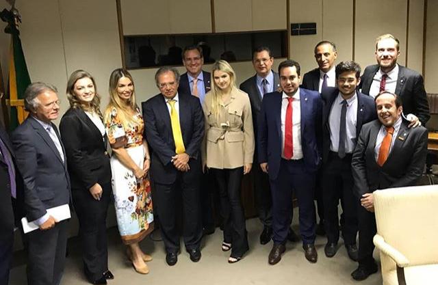 Quatro deputados paranaenses – Aline Sleutjs (PSL), Felipe Barros (PSL), Luíza Canziani (PTB) e Paulo Martins (PSC) – integram a Frente Parlamentar para Defesa e Fomento do Livre Mercado lançada pelo deputado Kim Kataguiri (DEM-SP). Até agora, 12 partidos aderiram à frente: DEM, PSDB, PP, PRP, PSL, Podemos, Novo, MDB, PPS, PSD e PSB. Assim de formada, os parlamentares visitaram o ministro Paulo Guedes (Economia).