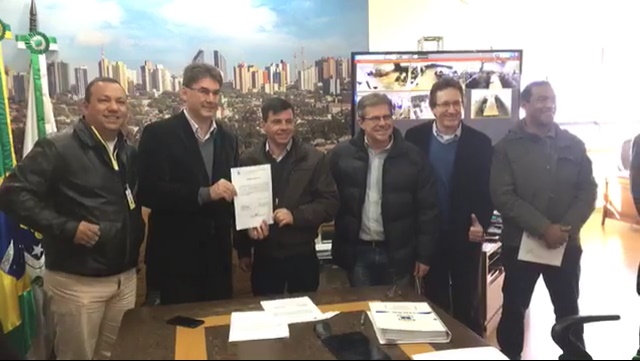 O prefeito Leonaldo Paranhos assinou nesta terça-feira, 18, a ordem de serviço para construção de mais um terminal de transporte urbano em Cascavel. O investimento é de R$ 5,2 milhões e as obras começam imediatamente e devem ser entregues num prazo de oito meses.“Assinei ainda a sanção do projeto que libera o financiamento da Avenida Tito Muffato e o contrato com as empresas vencedoras da licitação do fornecimento de combustíveis para a frota do Município”, disse Paranhos