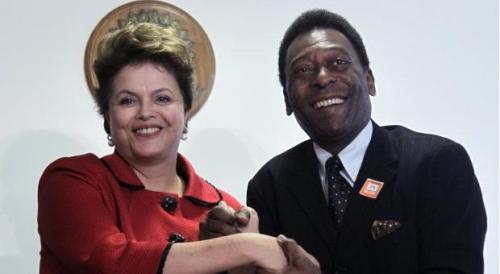 “Eu não poderia deixar de aceitar esse convite da nossa presidenta. Como brasileiro, vocês sabem que eu já faço isso desde que eu nasci, desde a minha primeira Copa do Mundo que eu defendo e faço promoção do Brasil”, disse Pelé a jornalistas após encontro com Dilma no Palácio do Planalto.