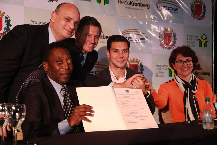 O secretário municipal do Esporte, Lazer e Juventude, Marcello Richa, e o maior ídolo da história do futebol brasileiro, o Rei Pelé, assinaram nesta sexta-feira (18) termo de cooperação para o desenvolvimento do Programa Esportivo Lúdico Educacional (PELE). Idealizado pelo ex-jogador, o projeto será implantado nas atividades de contraturno do programa Escola+Esporte=10 da Prefeitura de Curitiba.