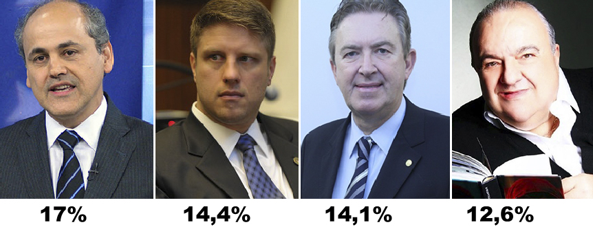 Levantamento do laboratório de pesquisas da Uninter, coordenado pelo professor Ricieri Garbelini, traz os números para intenção de votos para prefeito de Curitiba: Gustavo Fruet (PDT), com 17%, está tecnicamente empatado com Requião Filho (PMDB), com 14,4%, e Luciano Ducci (PSB), com 14,1%. Em seguida vem Rafael Greca (PMN), com 12,6%; Fernando Francischini (SD) com 10,9%; Ney Leprevost (PSD), com 8% e Tadeu Veneri (PT) com 3,6%. A pesquisa, entre os dias 19 e 24 de outubro, entrevistou 804 eleitores. A margem de erro é de 3%.