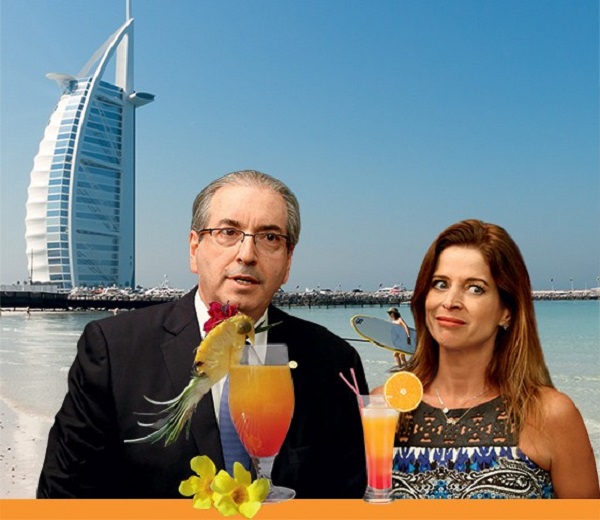 Líder do PMDB da Câmara dos Deputados em abril do ano passado, Eduardo Cunha viajou acompanhado de sua mulher, Cláudia Cruz, rumo à China numa comitiva de parlamentares. Todos fizeram escala em Dubai. Enquanto seus colegas pernoitaram num hotel cinco estrelas, o casal Cunha recusou a estadia e passou a noite no Burj Al Arab, primeiro hotel sete estrelas do mundo, cuja diária mais barata custa R$ 7,5 mil. Cunha diz que pagou suas despesas.