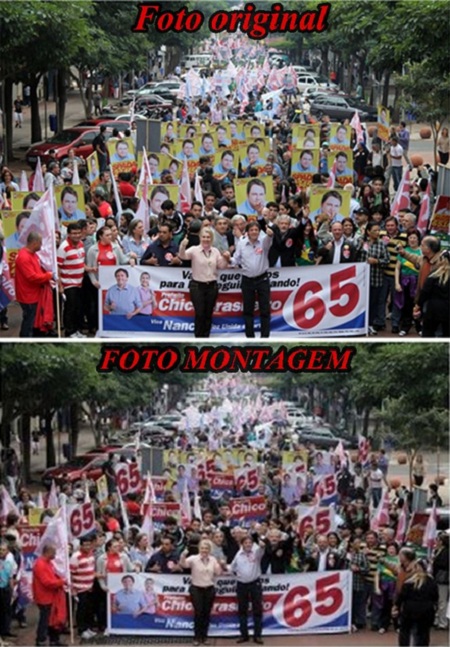 A publicação, do blog Nossa Voz, sugere que a campanha do comunista Chico Brasileiro, candidato a prefeito de Foz do Iguaçu, abriu mão de um recurso muito utilizado por top models para ganhar beleza e fama.