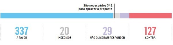 Placar do impeachment de Dilma: faltam 5 votos para mínimo de 342
