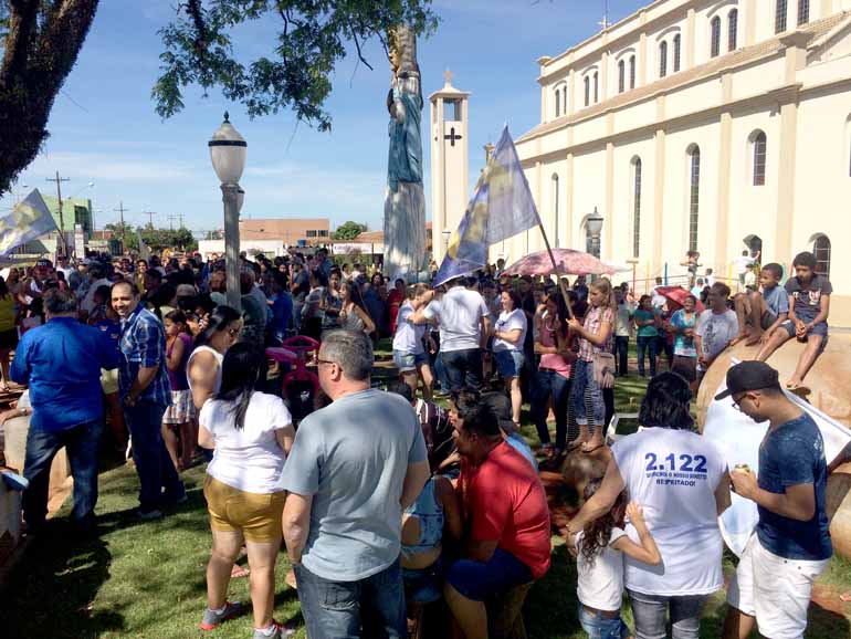 Com faixas e cartazes, os manifestantes se concentraram na praça ao lado da Igreja Matriz para pedir que a Justiça Eleitoral mantenha o resultado das eleições realizadas no dia 2 de outubro, quando o atual prefeito recebeu 2.122 votos, contra 452 do segundo colocado, mas sua candidatura foi cassada pela Justiça Eleitoral.