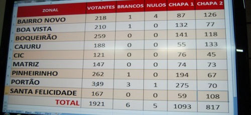O grupo liderado por Bernardo e Gleisi recebeu 57% dos votos, contra 43% do grupo liderados pelos deputados Dr. Rosinha (federal) e Tadeu Veneri (estadual), que defendia a tese de candidatura própria nas eleições de 7 de outubro.