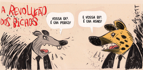 Porcos, asnos e outros bichos em duas versões – por Benett e Nani 19/05/2013 Compartilhe isso: Clique para compartilhar no Facebook(abre em nova janela) Facebook Clique para compartilhar no X(abre em nova janela) 18+ Clique para compartilhar no WhatsApp(abre em nova janela) WhatsApp Relacionado