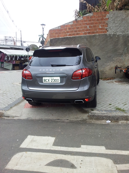 “É sagrado: todo sábado, este veículo Porsche estaciona na calçada, em cima da rampa para cadeira de rodas na Rua Paraguaçu com a Conselehiro Carrão (e que carrão!), no bairro Juvevê.