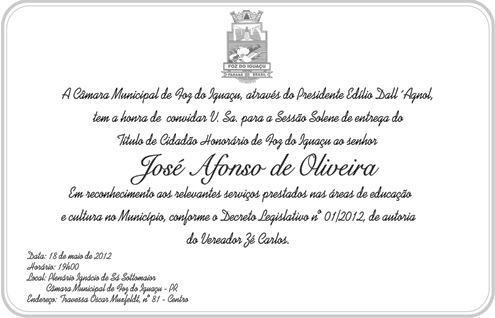 Professor Afonso recebe nesta sexta (18) o título de Cidadão Honorário de Foz 18/05/2012 Compartilhe isso: Clique para compartilhar no Facebook(abre em nova janela) Facebook Clique para compartilhar no X(abre em nova janela) 18+ Clique para compartilhar no WhatsApp(abre em nova janela) WhatsApp Relacionado