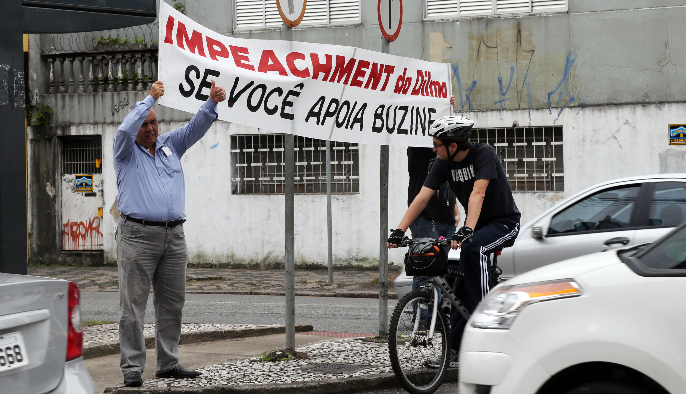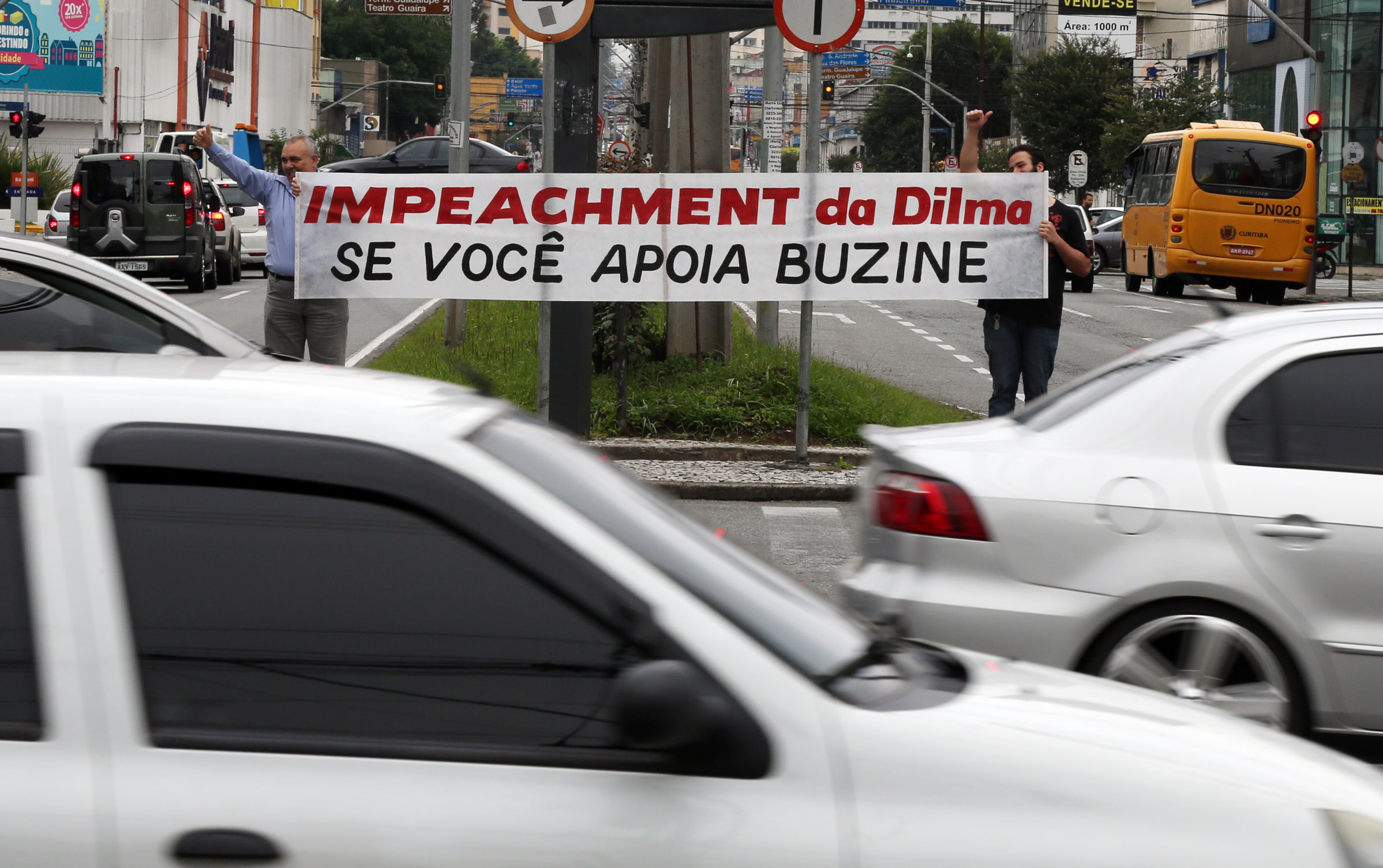 O fotógrafo Orlando Kissner flagrou um protesto solitário, mas com adesão, pelo impeachment da presidente Dilma Rousseff (PT). Um homem esticou sua faixa nas esquinas das avenidas Visconde de Guarapuava e Mariano Torres.