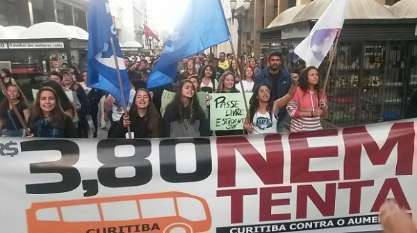 Hoje, às 18h, o prefeito Gustavo Fruet (PDT) vai enfrentar o primeiro protesto unificado contra o aumento da passagem de ônibus de Curitiba. Na menos que cinco movimentos – Frente de Luta pelo Transporte, Movimento de Usuários por Transporte, Movimento R$ 3,70 Nem Pensar, Movimento de Acompanhamento do Transporte Público, Movimento Passe Livre – mais entidades como UPE, Upes, Ubes, USJ e CUT vão se concentrar na Boca Maldita e de lá, a partir das 18h30, vão bloquear as principais ruas do centro de Curitiba em pleno pico do tráfego de veículos. “Recomendamos a todos que não usem as ruas centrais porque elas estarão bloqueadas a parir das 18h30, 19h”, avisa Gregório Liberato, do MPL.