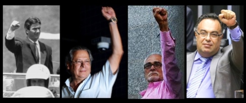 Os punhos cerrados de petistas lembram o ex-presidente Fernando Collor (PTB) ao ser afastado do Planalto em 1992. Collor sofreu nas mãos do PT e hoje é seu aliado no Senado. “Não me deixem só” é a frase mais emblemática do ex-presidente.