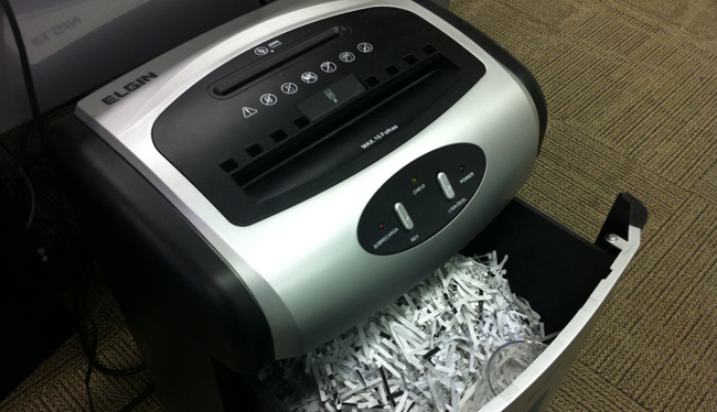 Em pedacinhos – A Presidência da República abriu licitação para comprar uma fragmentadora capaz de destruir até 50 folhas de papel por vez, além de CDs e cartões de crédito. O preço máximo fixado é de R$ 18 mil.