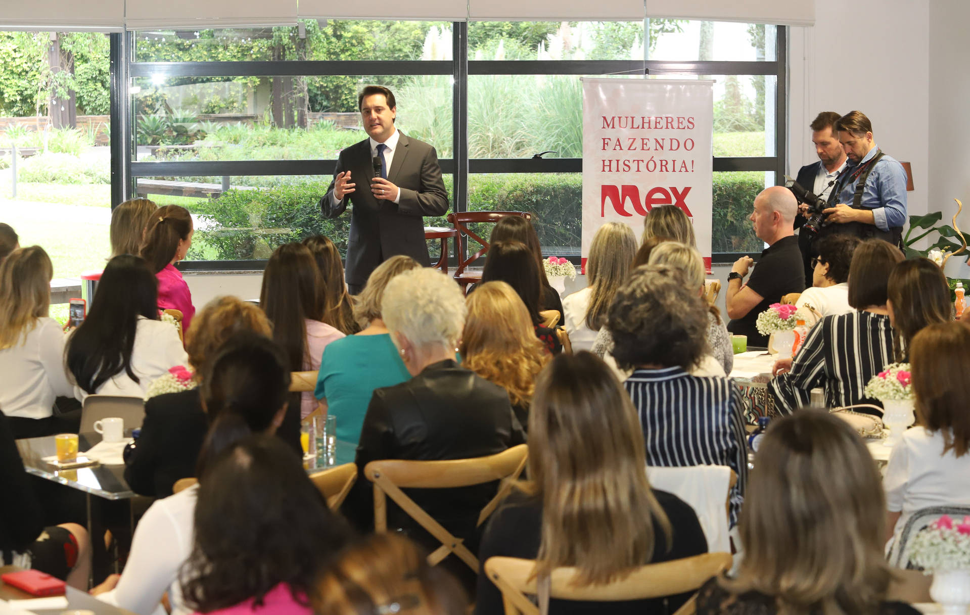 O governador foi o principal palestrante do evento do MEX Brasil, que teve como tema “O Paraná que queremos – iniciativas que vão desenvolver nosso Estado”. O encontro reuniu cerca 100 profissionais, entre presidentes de empresas, vice-diretoras e gerentes em funções estratégicas nas organizações em que atuam. “Os debates e sugestões surgidos neste espaço contribuem com a implantação de políticas públicas que incentivam outras mulheres que querem seguir esse caminho”, disse o governador. A primeira-dama, Luciana Saito Massa, também acompanhou o encontro.