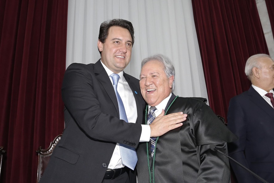 O governador Ratinho Junior participou nesta quarta-feira (23), em Curitiba, da posse dos novos conselheiros do Tribunal de Contas do Estado para o biênio 2019-2020. Foram empossados os conselheiros Nestor Baptista (presidente), Fabio Camargo (vice-presidente) e Ivens Linhares (corregedor-geral). Eles foram eleitos em 12 de dezembro de 2018, na última sessão de 2018 do Pleno do TCE-PR.