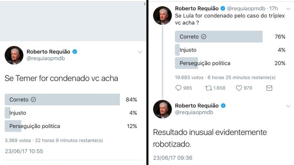 Quando faltava uma hora para concluir a pesquisa, o resultado era: preso (25%), impedido (17%) e presidente (58%). Porém, quando a enquete terminou, surgiu o resultado bizarro que deixou escapar a fraude: preso (3%), interditado (97%) e presidente (7%). Os internautas não perdoaram. As informações são do Livre.Jor.