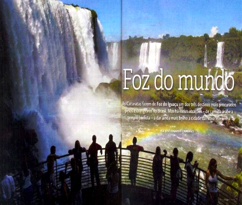 A reportagem “Foz do Mundo” informa que “as Cataratas fazem de Foz do Iguaçu um dos três destinos mais procurados pelos estrangeiros no Brasil”. E diz que, para “dar mais brilho à cidade da Nova Maravilha”, as atrações incluem até comida árabe e templo budista.