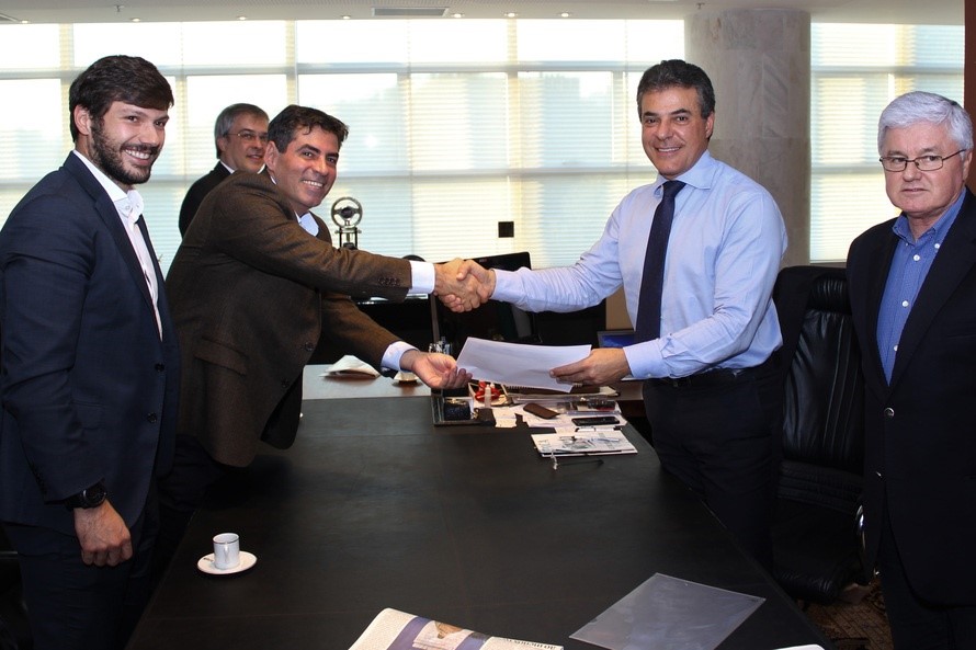 O chefe da Casa Civil, Valdir Rossoni e o deputado Tiago Amaral acompanharam a assinatura da liberação dos recursos.