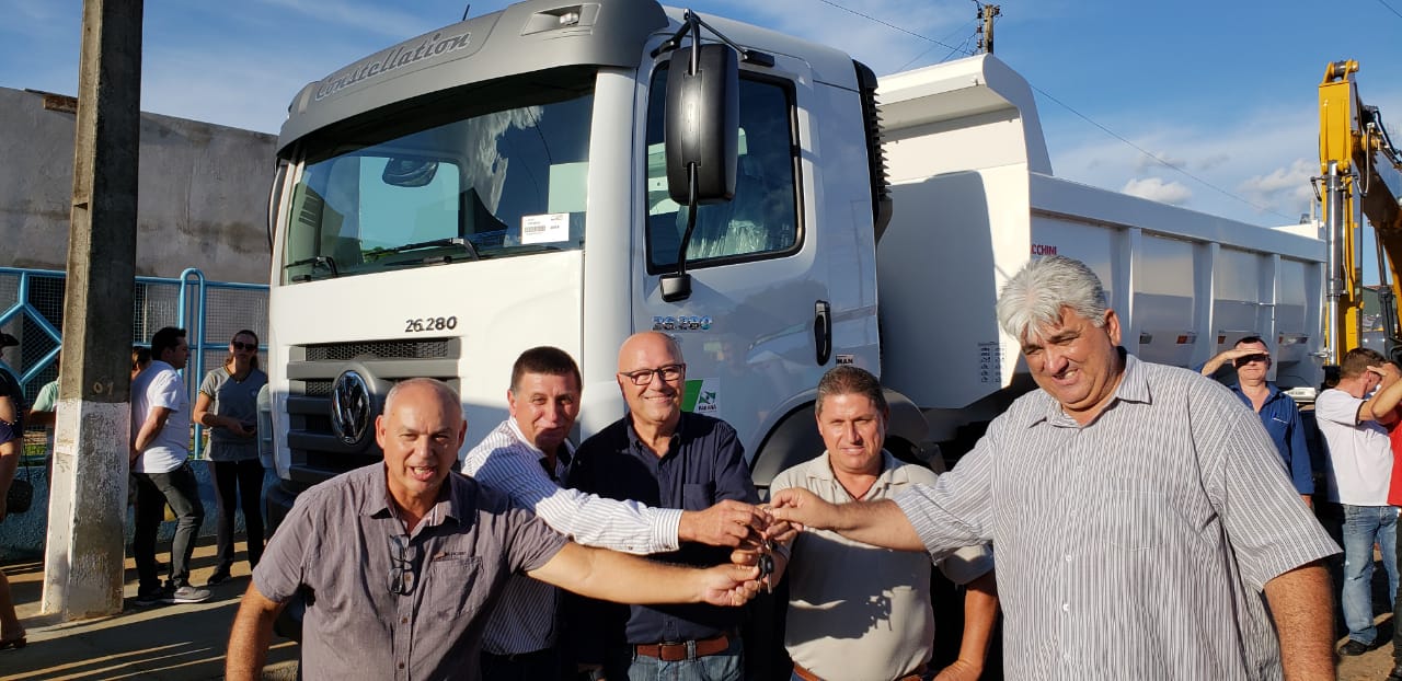 O deputado Romanelli (PSB) e o prefeito Pedro Banzé (MDB) entregou nesta quinta-feira, 21, uma série de equipamentos para uso da prefeitura em serviços de infraestrutura em Guapirama: dois caminhões caçamba, uma retroescavadeira, uma escavadeira hidráulica, um trator, um ônibus, uma ambulância e um carro para o Conselho Tutelar. Romanelli e Pedro Banzé também visitaram a fábrica de equipamentos odontológicos Preven e conversaram com os trabalhadores da indústria.