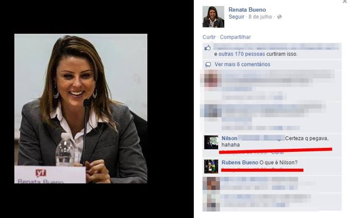 Desde quando era vereadora em Curitiba, Renata recebe elogios por sua beleza nas redes sociais. E este foi o caso de um internauta de nome Nilson que, ao comentar uma foto de perfil de Renata, disse que “certeza q pegava” (sic).