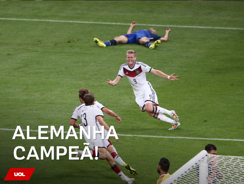 Grande jogo. Perdi com a Argentina. Creio que podíamos ter ganho, se não perdêssemos três gols feitos. Faltou-nos Di Maria e Messi boa parte do tempo, anota Fábio Campana. Mas a Alemanha venceu com méritos de seu futebol eficiente, objetivo e bem treinado. Ofensivo. Agora vamos sentir falta de bom futebol. Até quando? O Brasil não merecia chegar à final.