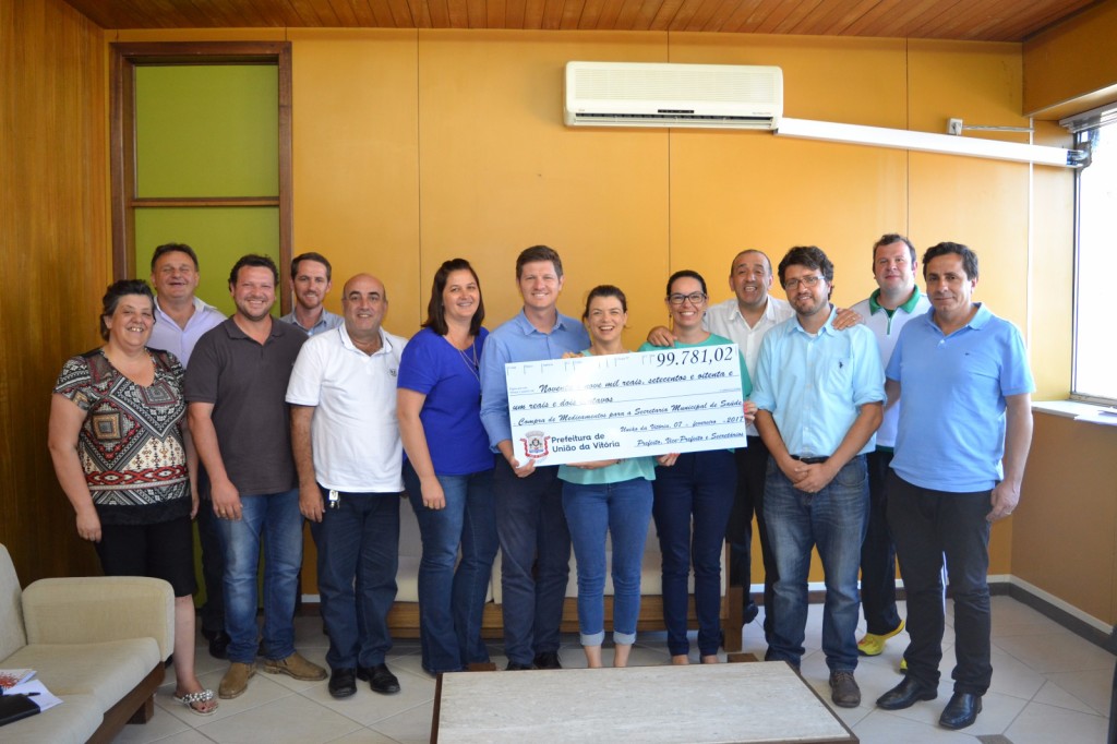 Logo no início de janeiro, o prefeito Santin Roveda anunciou o repasse do primeiro salário dele, do vice-prefeito Bachir Abbas e dos secretários para compra de medicamentos e equipamentos para saúde pública de União da Vitória. Nesta terça-feira, 7, Santin reuniu o secretariado e entregou um cheque de R$ 99.781,02 à secretário de Saúde, Silvia Regina Andrade.