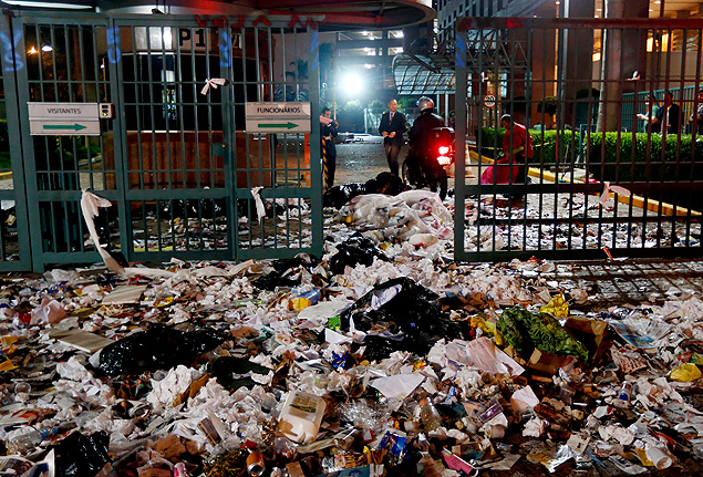 Em protesto contra reportagem de capa da revista “Veja”, cerca de 50 pessoas – portando faixas, camisetas, bandeiras e cartazes da campanha de Dilma Rousseff (PT) – atacaram e picharam a sede da editora Abril, localizada na zona oeste de São Paulo, e espalharam edições picadas da publicação em frente ao prédio na noite desta sexta-feira (24). Segundo a revista, o doleiro Alberto Youssef disse em depoimento à Polícia Federal e ao Ministério Público Federal, no seu processo de delação premiada, que a presidente Dilma Rousseff (PT) e o ex-presidente Lula tinham conhecimento do esquema de desvio de dinheiro na Petrobras.