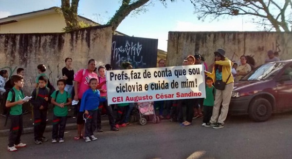 Registro de manifestação de estudantes, professores e pais do CEI Augusto Cpesar Sandino, mostrando que o prefeito de Curitiba, Gustavo Fruet (PDT), está mais preocupado em cuidar de cicloativistas. É a vida como ela é!